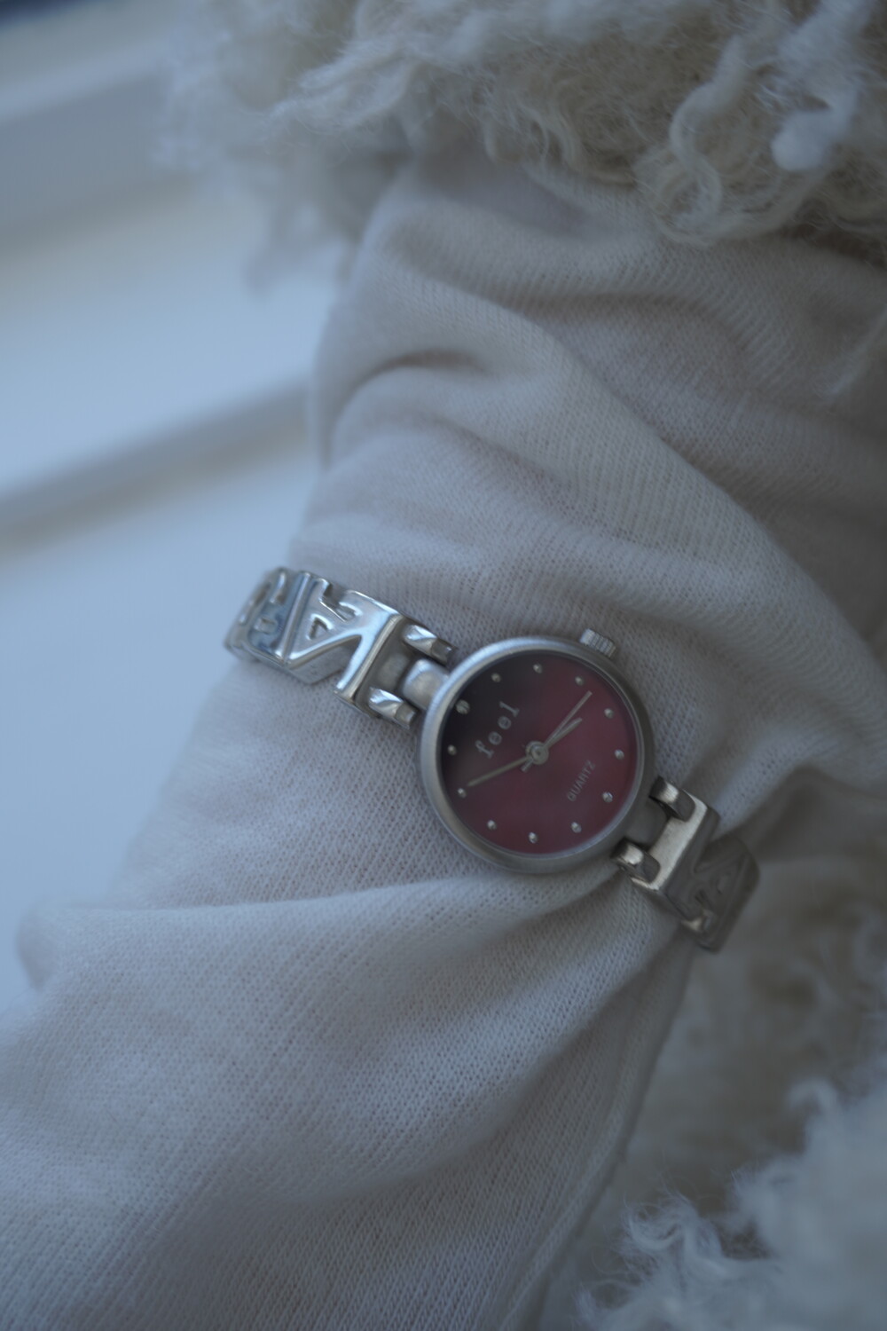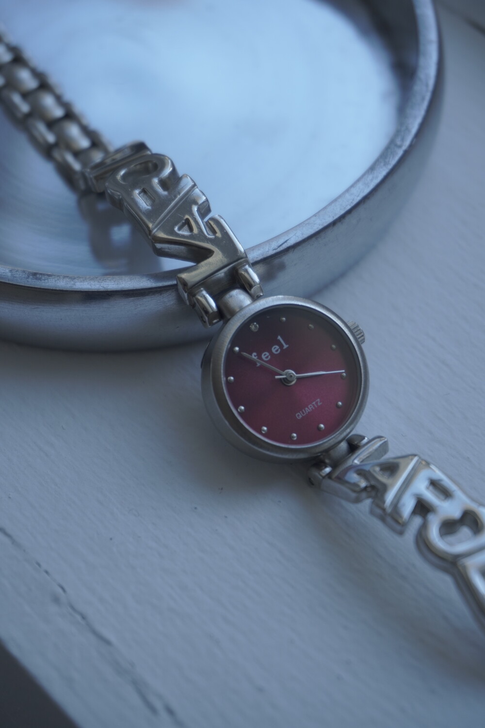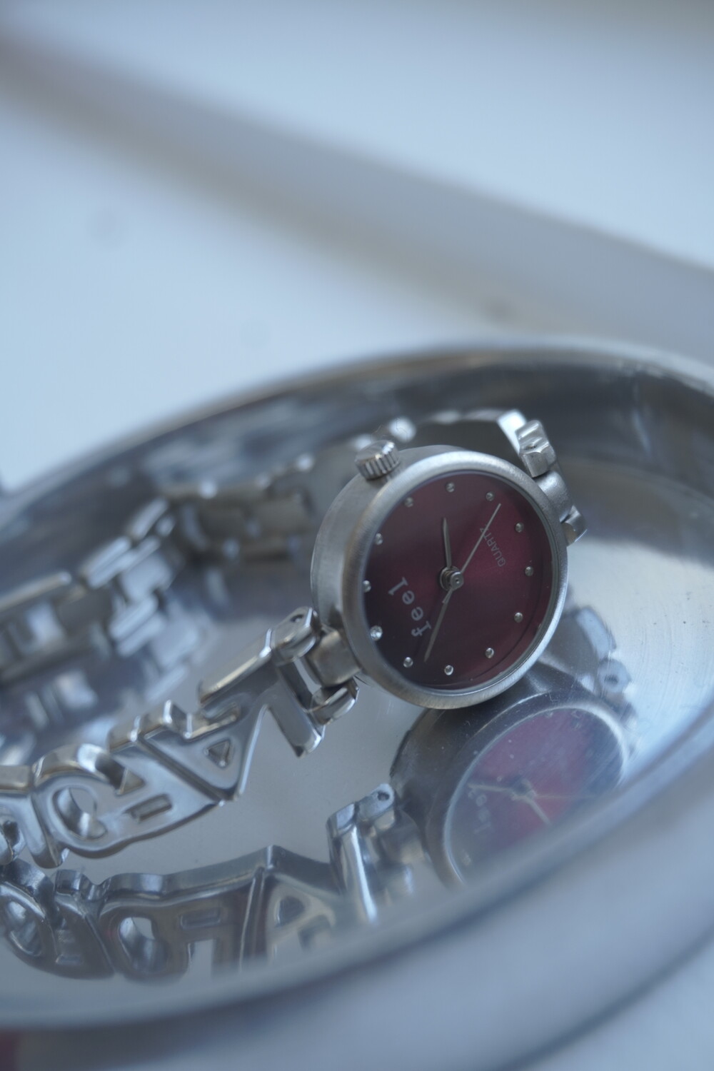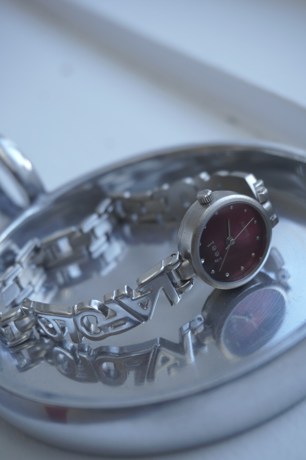 - 메탈릭한 텍스쳐의 버건디컬러 다이얼