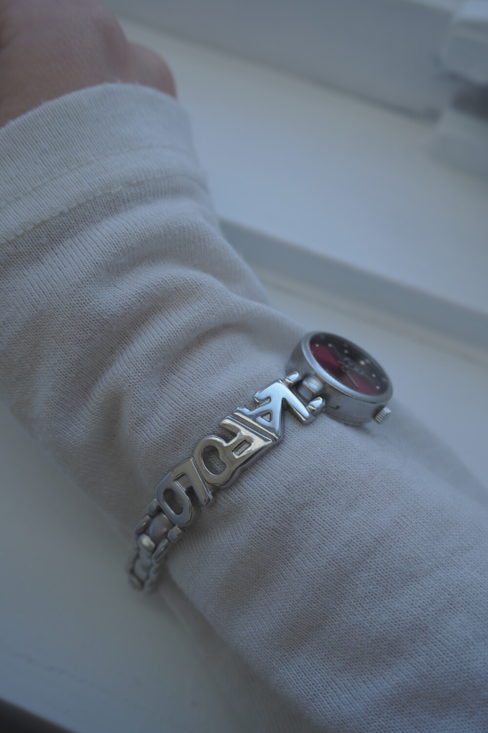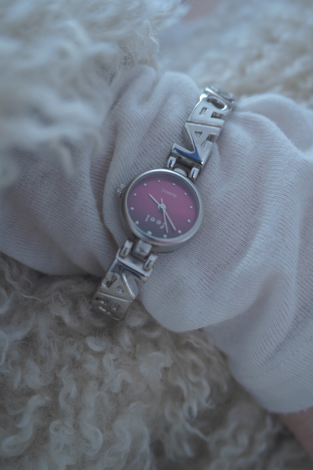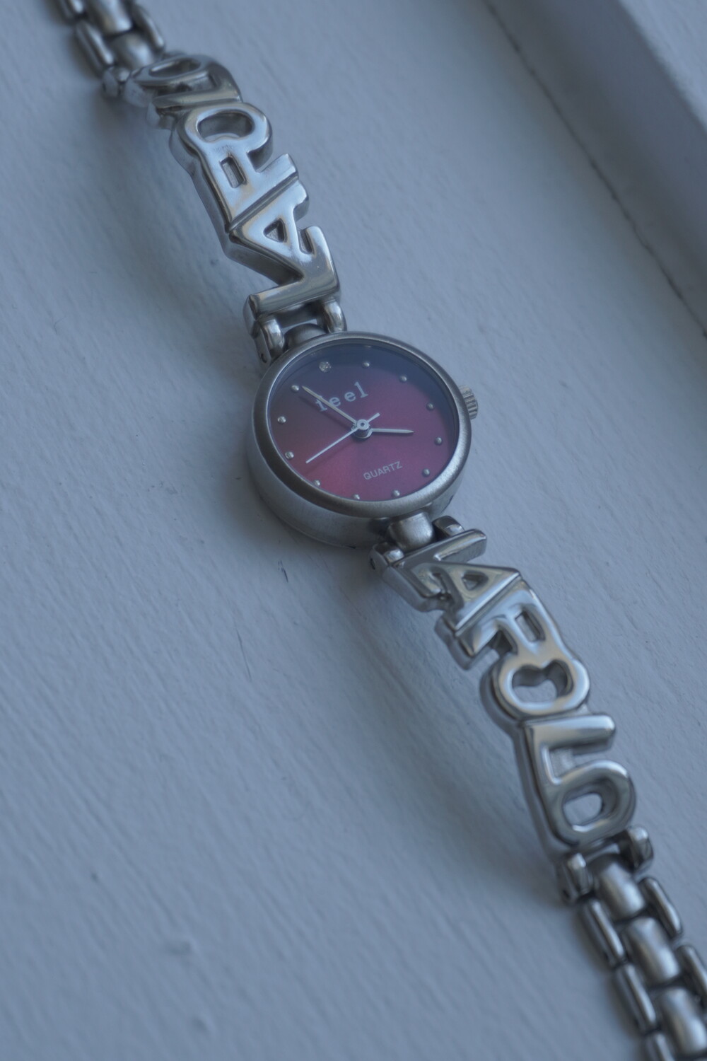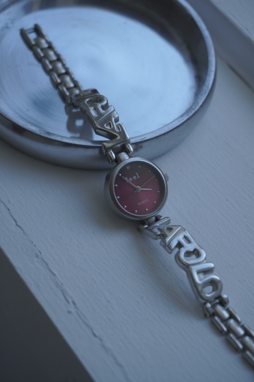 - 메탈릭한 텍스쳐의 버건디컬러 다이얼